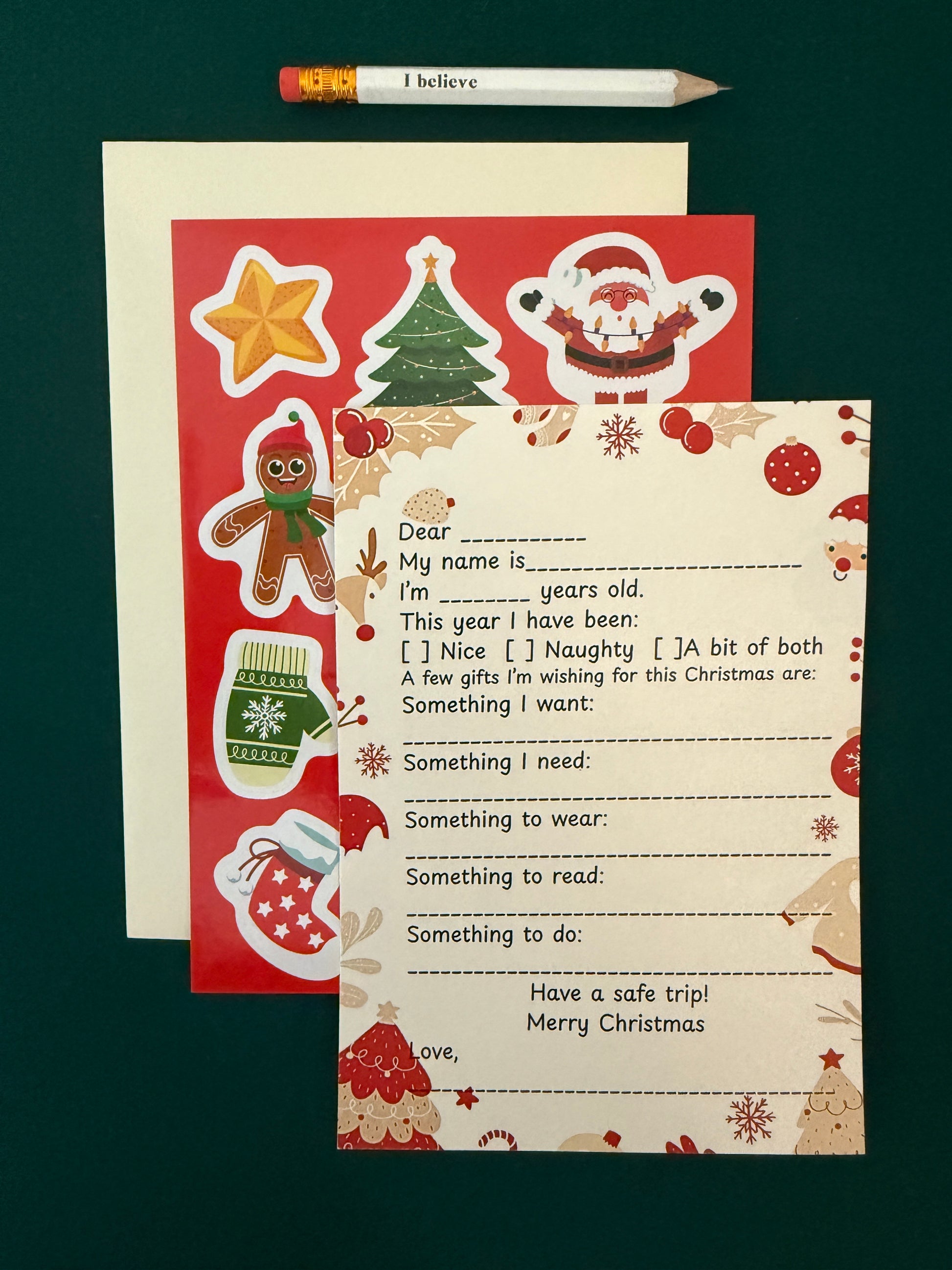 Create lasting holiday memories with the DIY letter to Santa pack. Help your child write a personalized letter to Santa using the included template and pencil. The festive envelope, complete with fun sticker decorations makes this activity even more special. Perfect for sparking your child's imagination and spreading Christmas cheer!